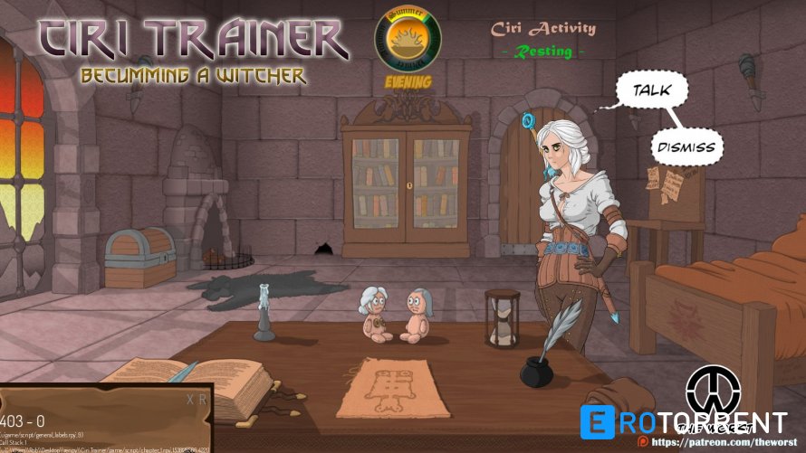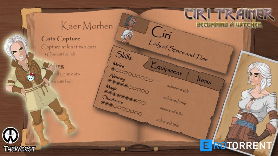 Ciri Trainer – это порно-игра по Ведьмаку, где вы сможете поразвлечься с королевой Цинтры и помочь ей исполнить свою истинную судьбу. Эротический сюжет предложит вам решить за беловолосую ведьму, что лучше для нее: обучиться магии или же стать вашей послушной девочкой. Ваше отношение к Цири будет напрямую влиять на развитие истории и концовку.
