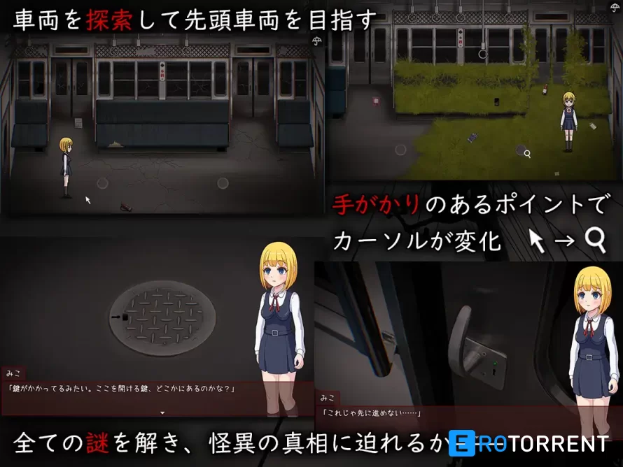 В поезде есть не только подсказки для решения загадок, но и ловушки, а также различные гадости. Иногда вас даже могут унизить. В игре есть история о странном явлении, интересное исследование и решение головоломок, а также жесткие и грязные H-сцены в странном поезде.