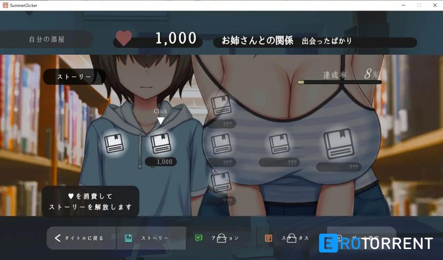 Summer Clicker ~Sweet Summer Vacation With Oneesan~ – это порно-игра в жанре симулятор, где по сюжету вы встречаете грудастую красотку в библиотеке во время летних каникул, и все началось с того, что она кое-что забыла. С тех пор вы стали приходить к ней домой поиграть, затем начинаются ваши тайные отношения...
